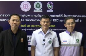 โรงพยาบาลราชวิถี กรมการแพทย์ กระทรวงสาธารณสุข ร่วมกับโรงพยาบาลระยอง จัดกิจกรรม “คาราวานการแพทย์เฉพาะทาง รพ.ราชวิถี – รพ.ระยอง เพื่อประชาชนในเขตพัฒนาพิเศษภาคตะวันออก (EEC) และเขตสุขภาพที่ 6” ระหว่างวันที่ 22 – 23 พฤษภาคม 2568 ณ โรงพยาบาลระยอง จังหวัดระยอง โดยมี นายแพทย์มนู ศุกลสกุล สาธารณสุขนิเทศก์ เขตสุขภาพที่ 6