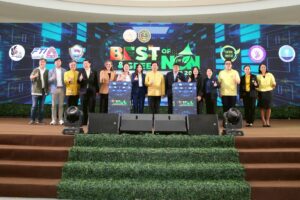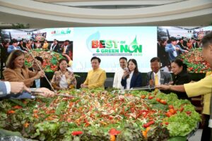 นายเกียรติศักดิ์ ตรงศิริ ผู้ว่าราชการจังหวัดนนทบุรี นำทัพส่วนราชการ-เอกชน นั่งรถไฟฟ้าสายสีชมพู ร่วมเปิดงาน ‘Best and Green of Nonthaburi 2025’ อย่างเป็นทางการ ซึ่งงาน ‘Best & Green of Non 2025’ เป็นมหกรรมงานแสดงและจำหน่ายสินค้าครั้งใหญ่ของจังหวัดนนทบุรี