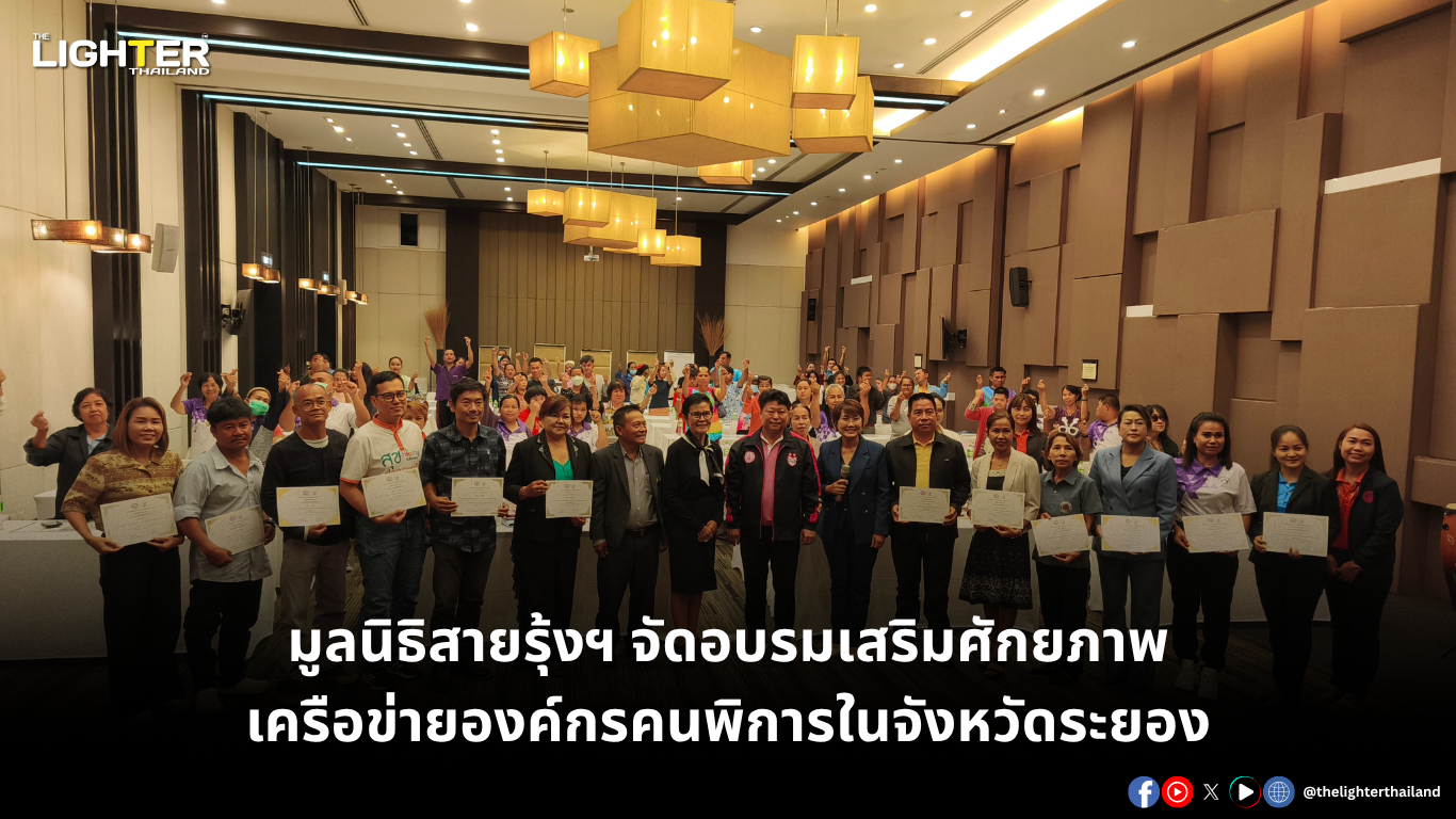 วันที่ 17 กรกฎาคม 2568 มูลนิธิสายรุ้งเพื่อคนพิการ จัดโครงการ “ส่งเสริมความรู้บุคลากรเครือข่ายองค์กรคนพิการด้านการทำงานร่วมกับเครือข่ายภาครัฐและภาคประชาชน” ประจำปีงบประมาณ 2568 ณ ห้องประชุมโรงแรมคามิโอแกรนด์ จังหวัดระยอง โดยมีผู้เข้าร่วมอบรมจำนวนกว่า 100 คน จากองค์กรคนพิการและหน่วยงานภาคีเครือข่ายทั้งภาครัฐและภาคประชาชนในพื้นที่จังหวัดระยอง