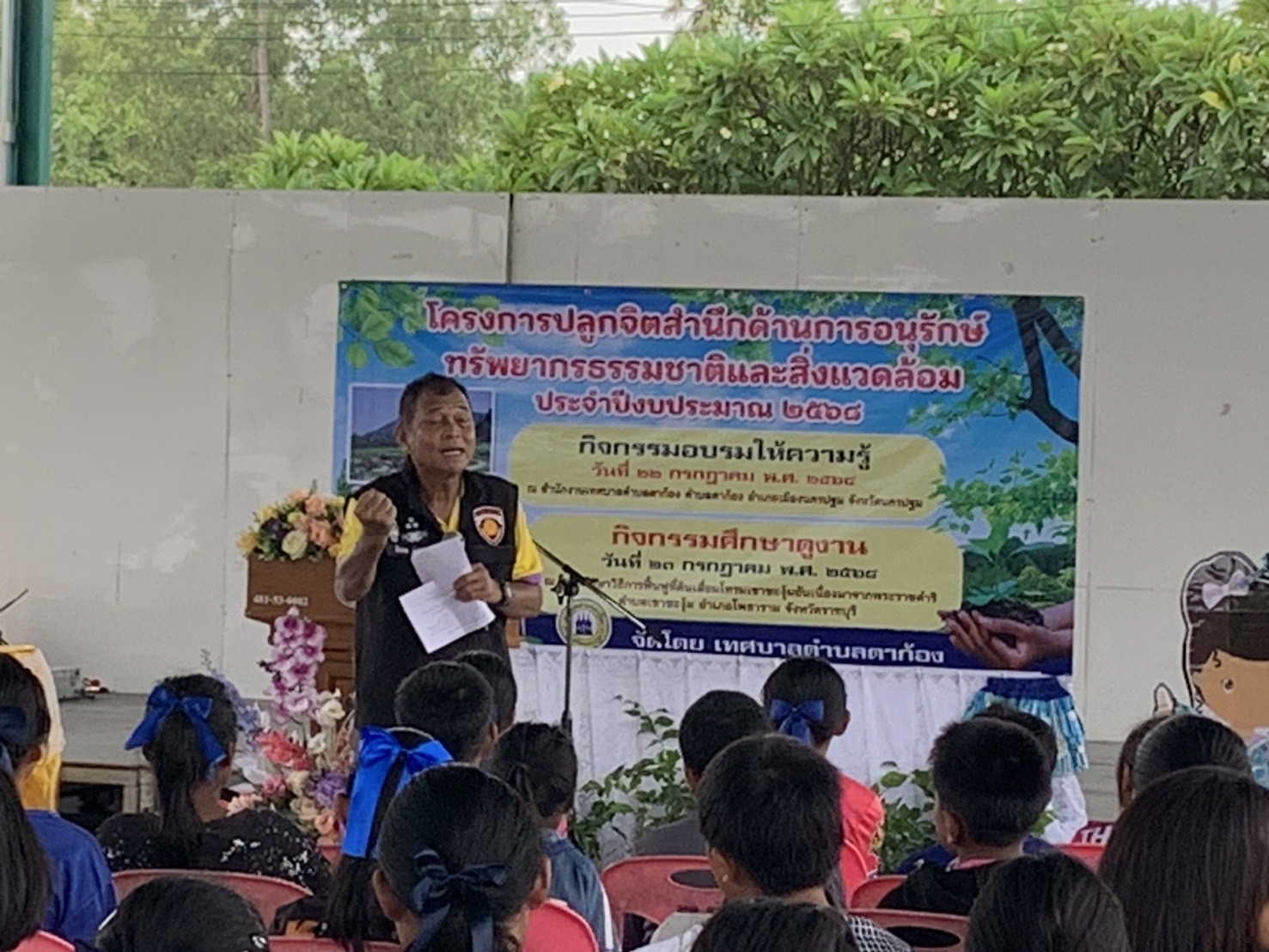 ภายใต้การนำของ นายกิตจา ฉิ่งทองคำ นายกเทศมนตรีตำบลตาก้อง อำเภอเมือง จังหวัดนครปฐม เทศบาลตำบลตาก้องได้จัดโครงการอบรมเชิงปฏิบัติการ “นวัตกรรมจุลินทรีย์จิตอาสาน้ำข้าว” ให้กับนักเรียนระดับประถมและมัธยมต้นกว่า 100 คน จากโรงเรียนในพื้นที่ ณ อาคารอเนกประสงค์ของเทศบาลฯ โดยมีจุดมุ่งหมายเพื่อปลูกฝังจิตสำนึกด้านการอนุรักษ์สิ่งแวดล้อมตั้งแต่วัยเยาว์ พร้อมทั้งถ่ายทอดองค์ความรู้ในการบริหารจัดการของเสียในครัวเรือนอย่างยั่งยืน