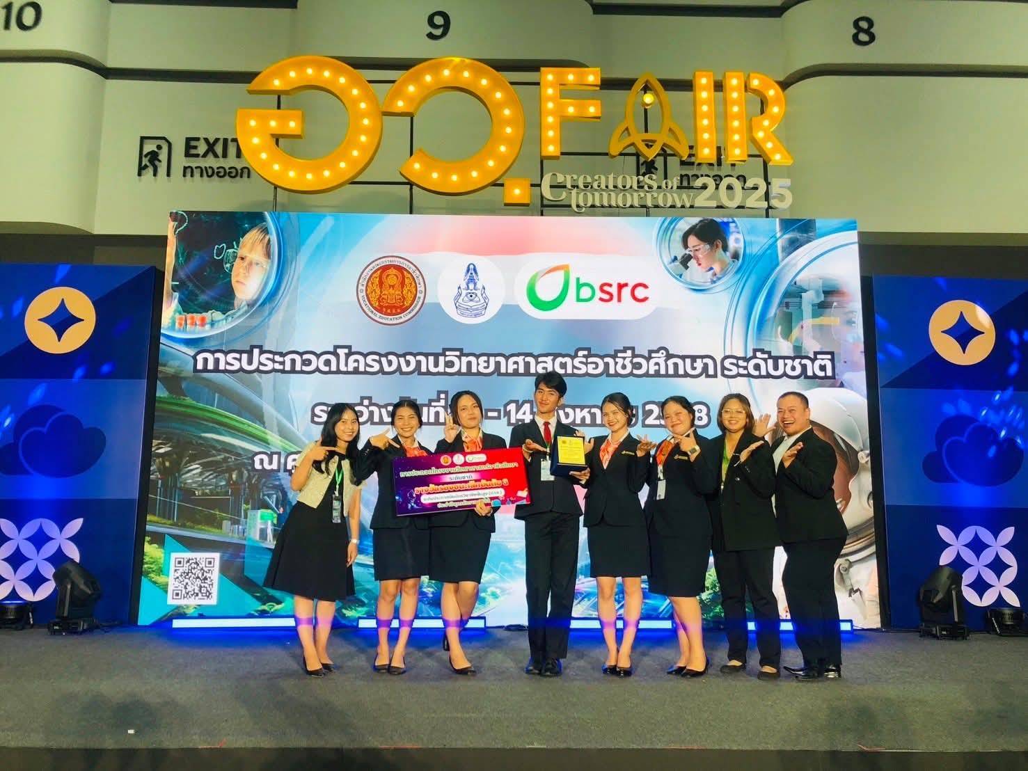 เมื่อวันที่ 14 ส.ค.ผู้สื่อข่าวรายงานว่า นายกิตติพงค์ อุตตมะเวทิน ผอ.วิทยาลัยเทคนิคระยอง พร้อมด้วยครู และบุคลากรทางการศึกษา ร่วมแสดงความยินดีกับตัวแทนนักศึกษาแผนกวิชาการโรงแรม ประกอบด้วย นายคณสันต์ แคสันเทียะ น.ส.พรกนก อุดมกัน น.ส.ลิดา ฤทธิ์ น.ส.เหมี่ยว แก้วบุญตา น.ส.ปาณิตา ชนินทรพัฒ และครูที่ปรึกษา ประกอบด้วย น.ส.อัญชนา งาเจือ นายสุกฤษ ศรีวรรณะ และน.ส.กมลชนก นาทอง พร้อมด้วยครูที่ปรึกษาพิเศษ มีนางอติณัช แสนยศ นางสุภาวดี บรรเทาทุกข์ และน.ส.มานิดา หยาดทอง ที่ได้รับรางวัลรองชนะเลิศอันดับ 3 ระดับชาติ จากการประกวดโครงงานวิทยาศาสตร์อาชีวศึกษา ระดับประกาศนียบัตรวิชาชีพชั้นสูง (ปวส.) ประจำปี 2568 ชื่อ ‘โครงงานการเปรียบเทียบกรดในน้ำผักและผลไม้ที่มีผลต่อการขึ้นฟูของไข่ขาวเพื่อนำมาพัฒนาผลิตภัณฑ์กรอบกรอบโปรตีน’ ที่ศูนย์การประชุมแห่งชาติสิริกิติ์ กรุงเทพมหานคร ระหว่างวันที่ 12–14 ก.ค. ที่ผ่านมา.