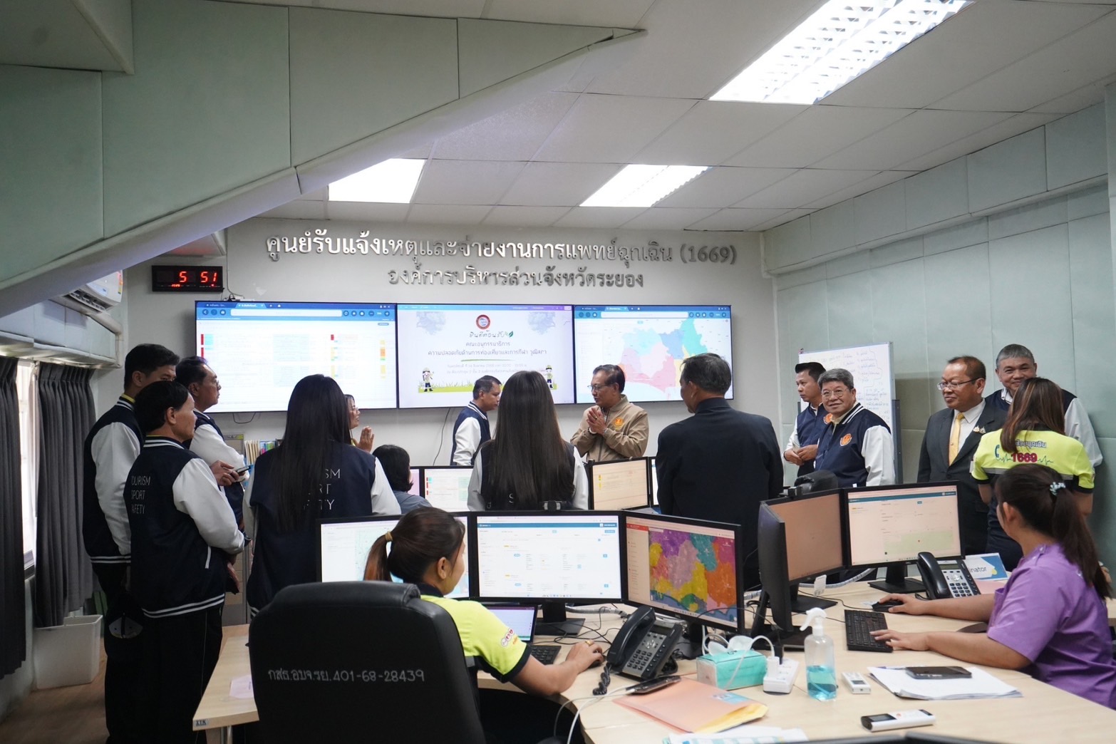 เวลา 13.30 นาฬิกา เยี่ยมชมศูนย์รับแจ้งเหตุและสั่งการการแพทย์ฉุกเฉิน 1669 ณ สนามกีฬากลางจังหวัดระยอง เกี่ยวกับกระบวนการรับแจ้งเหตุ การประสานงาน การปฏิบัติการช่วยเหลือผู้ป่วยฉุกเฉิน และระบบสนับสนุนภาคสนาม พร้อมเยี่ยมชมการทำงานของเจ้าหน้าที่และอุปกรณ์ประจำศูนย์