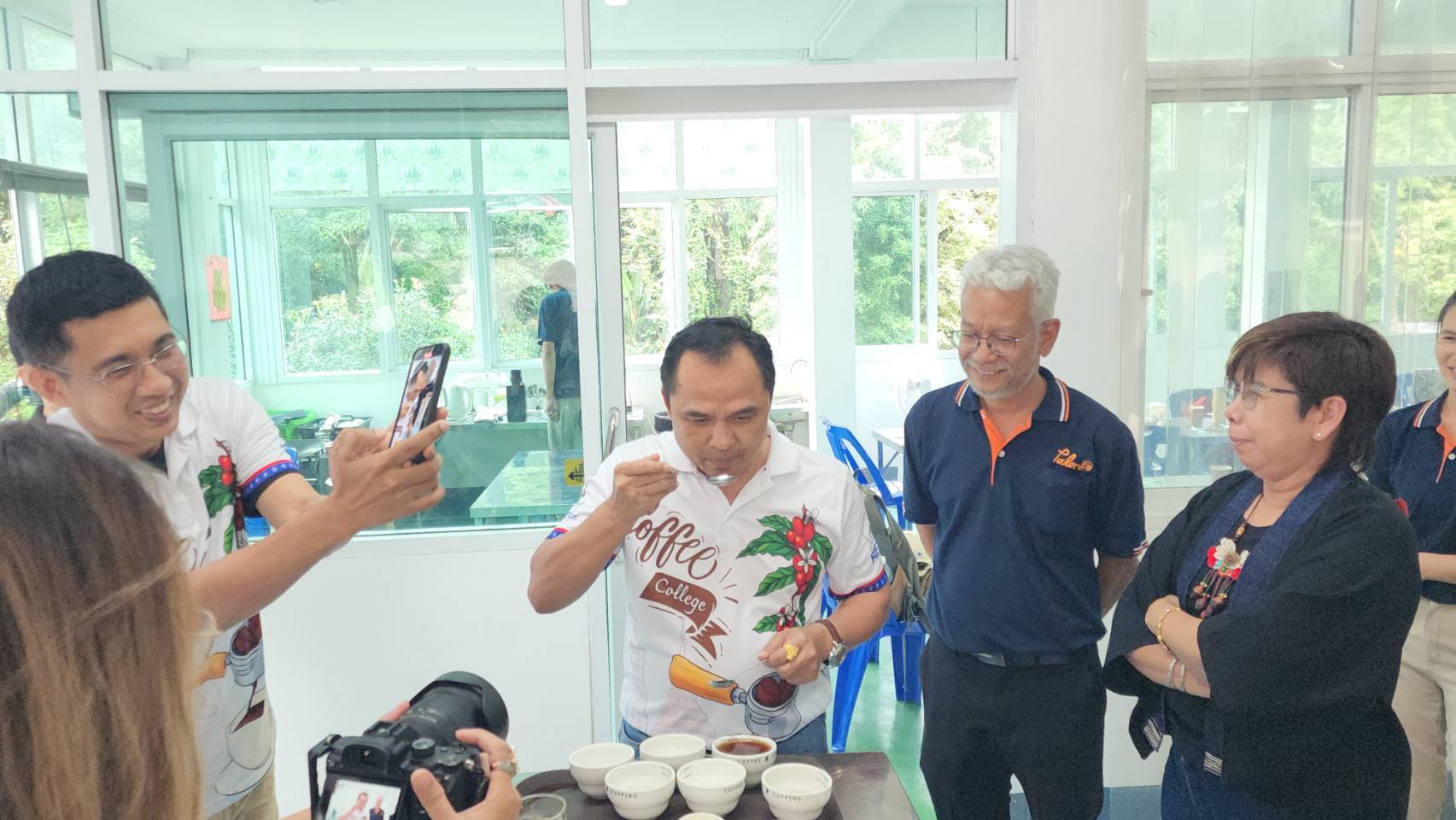 เมื่อวันที่ 15 ส.ค.68 ผู้สื่อข่าวรายงานว่า นายกิตติพงค์ อุตตมะเวทิน ผอ.วิทยาลัยเทคนิคระยอง และนายวีระชัย สมบัติกำไร ผอ.วิทยาลัยเทคนิคนิคมอุตสาหกรรมระยอง พาครูผู้สอนแผนกวิชาอาหารและโภชนาการ และแผนกวิชาการโรงแรม และบุคลากรประจำร้าน ‘ใบชะมวง’ ของวิทยาลัยเทคนิคระยอง และร้านกาแฟ ‘ควินิน คาเฟ่’ ของวิทยาลัยเทคนิคนิคมอุตสาหกรรมระยอง จาก ‘เมืองทะเลสู่ดอยสะเก็ด จ.เชียงใหม่’ ซึ่งเป็นแหล่งผลิตกาแฟขึ้นชื่อของประเทศไปอบรมเชิงปฏิบัติการด้านการ Cupping Coffee & Roaster ภายใต้โครงการพัฒนาทักษะและศักยภาพการจัดการเรียนการสอน อาชีวศึกษา ประจำปีงบประมาณ 2568 ระหว่างวันที่ 14-18 ส.ค.นี้ ที่ Palore Coffee & Tea House ม.5 ต.เทพเสด็จ อ.ดอยสะเก็ด จ.เชียงใหม่ โดยได้มีการอบรมในหัวข้อ Roaster เริ่มตั้งแต่การปลูก การดูแลรักษาต้นการเก็บเมล็ดกาแฟ การคั่วเมล็ดกาแฟ และมีการอบรมในหัวข้อ Cupping Coffee การชงกาแฟ การชิมประเมินคุณภาพรสชาติกาแฟ เป็นต้น นอกจากนี้ยังได้มีการเดินทางไปศึกษาดูงาน Cafe Coffee ต่างๆ ด้วย ก่อนจะมีการประชุมสรุปแนวทางการจัดทำเป็นหลักสูตรวิชาชีพระยะสั้น อาชีพบาริสต้า เรื่องการ Roaster การคั่วกาแฟ และ Cupping Coffee การเทส หรือการประเมินคุณภาพและรสชาติของกาแฟ เพื่อเปิดสอนอาชีพสร้างรายได้ให้กับ ปชช.ในพื้นที่ และนำองค์ความรู้ไปพัฒนารสชาติกาแฟของร้านกาแฟประจำวิทยาลัยให้ถูกปากคอกาแฟ รวมทั้งฝึกอาชีพให้ นศ. เรียนรู้ศาสตร์นักชงกาแฟอย่างลึกซึ้ง เพื่อต่อยอดเป็นเจ้าของธุรกิจ และผู้ประกอบการในอนาคตอีกด้วย