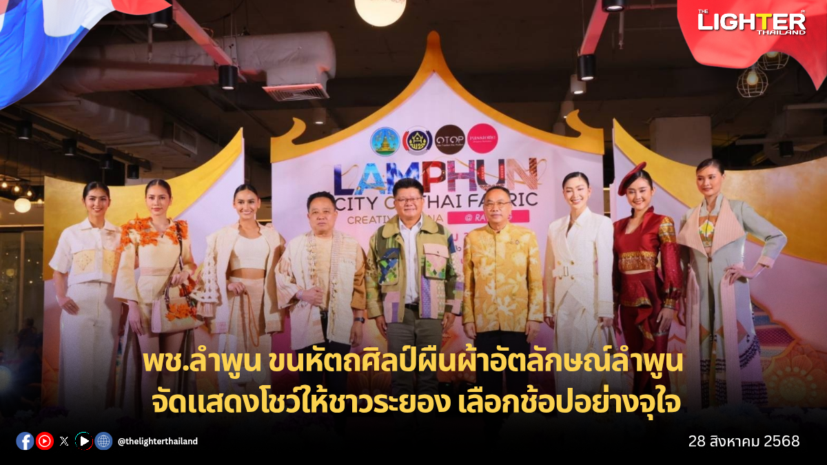 เมื่อเวลา 17.00 น. วันที่ 28 ส.ค.68 ที่ศูนย์การค้าแพชชั่นช้อปปิ้ง เดสติเนชั่นระยอง อ.เมือง จ.ระยอง ผู้สื่อข่าวรายงานว่า นายชาตรี ธินนท์ รอง ผวจ.ลำพูน เป็นประธานเปิดงาน LAMPHUN CITY OF THAI FABRIC Creative Lanna@Rayong ภายใต้โครงการส่งเสริมกระบวนการพัฒนาผ้าลำพูน ประจำปีงบประมาณ 2568 มีนายประจักษ์จิตร สายนะที พัฒนาการจังหวัดลำพูน นายชัชชัย กลีบมะลิ พัฒนาการจังหวัดระยอง หน.ส่วนราชการจังหวัดระยอง และลำพูน รวมทั้งประชาชนร่วมงานเป็นจำนวนมาก โดยงานดังกล่าว จัดขึ้นระหว่างวันที่ 27-31 ส.ค.นี้ ภายในงานมีการขนสินค้าเด่นของจังหวัดลำพูน อาทิ ผลิตภัณฑ์ผ้าลำพูนของผู้ผลิต ผู้ประกอบการผ้าของจังหวัดลำพูนกว่า 40 ร้านค้า มาเปิดให้ชาวจังหวัด ระยอง และใกล้เคียง ช้อปอย่างจุใจ และยังมีจำหน่ายอาหารและเครื่องดื่ม 10 ร้านค้ามาจำหน่ายในงานด้วย รวมทั้งมีนิทรรศการแสดงผลิตภัณฑ์ผ้าลำพูน กิจกรรมสาธิตการประดิษฐ์ของที่ระลึกจากผ้า เพื่อให้ผู้เข้าร่วมชมงานได้ฝึกปฏิบัตินำกลับไปเป็นของที่ระลึก และมีการเดินแบบผ้าลำพูนของนางแบบ การแสดงดนตรีของศิลปิน และกิจกรรมส่งเสริมการขาย เช่น กิจกรรมนาทีทอง กิจกรรมลุ้นรับโชคของรางวัลมูลค่ารวมไม่ต่ำกว่าวันละ 3,000 บาทด้วย โดยงานดังกล่าว จัดขึ้นมีวัตถุประสงค์ เพื่อเป็นการประชาสัมพันธ์ผลิตภัณฑ์ผ้าลำพูนให้เป็นที่รู้จักอย่างแพร่หลาย นำไปสู่การสร้างงานสร้างรายได้ให้แก่ผู้ผลิต ผู้ประกอบการผ้าจังหวัดลำพูน ส่งเสริมการกระจายรายได้และสร้างเศรษฐกิจชุมชนที่เข้มแข็ง