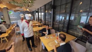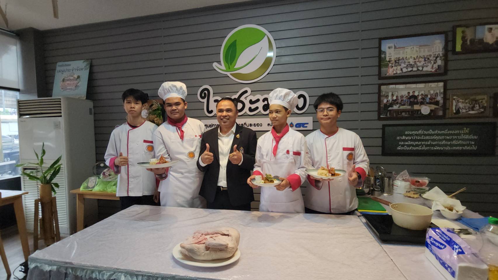 นายกิตติพงค์ อุตตมะเวทิน ผอ. วิทยาลัยเทคนิคระยอง เปิดเผยว่า เมนูที่โชว์ในวันนี้ได้รับรางวัลระดับประเทศทั้ง 2 เมนู โดยเมนู ‘แกงคั่วเป็ดย่างใส่หน่อกระทือ’ เมนูดังกล่าว เป็นการใช้ชูวัตถุดิบที่เป็นพืชสมุนไพรในพื้นถิ่นของระยอง นำสร้างสรรค์ให้เกิดมูลค่า นำหน่อกระทือมาดับกลิ่นคาวของเป็ด เพื่อเป็นอาหารที่สามารถขึ้นโต๊ะในภัตตาคารได้ และอีกเมนูเอากล้วยมาแทนมันฝรั่ง เป็นการเพิ่มมูลค่าวัตถุดิบในพื้นถิ่นเช่นเดียวกัน ซึ่งที่ทำในครั้งนี้ ต้องการให้ นศ. ได้คิดสร้างสรรค์เมนูเพื่อให้เป็นเมนูที่อยู่ในร้านอาหารของจังหวัดระยอง ซึ่งเมนูอาหารดังกล่าว พี่น้องประชาชน และร้านอาหารในจังหวัดระยอง สามารถมาเรียนรู้ได้ที่ศูนย์เรียนรู้อาหารถิ่นระยอง ร้านใบชะมวง วิทยาลัยเทคนิคระยอง เป็นคอร์สระยะสั้น สารมารถที่นำเมนูดังกล่าวที่ นศ.สร้างสรรค์ขึ้นมา เอาไปขึ้นโต๊ะร้านอาหารของตัวเองได้ นอกจากนี้สิ่งที่ นศ.จะได้ ยังเป็นในเรื่องของฝึกอาชีพ ตอนเรียนอยู่ นศ. ก็สามารถที่จะหารายได้ในระหว่างเรียนจากการทำอาหารดังกล่าวได้ และเมื่อสำเร็จการศึกษาไปแล้ว ร้านอาหารต่างๆ ก็ยังจะสามารถรับ นศ.เหล่านี้ที่มีทักษะไปเป็นเชฟประจำร้านอาหารของตัวเองได้อีกด้วย สุดท้ายทางวิทยาลัยมุ่งหวังที่จะให้ นศ. เป็นผู้ประกอบการ เป็นเจ้าของธุรกิจเองได้ในอนาคต รวมทั้งมีส่วนร่วมในการส่งเสริมการท่องเที่ยว ส่งเสริมอาหารพื้นถิ่นของจังหวัดระยอง เพื่อให้ นศ. ได้มีอาชีพเลี้ยงตัวเอง และครอบครัวต่อไป…