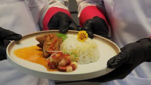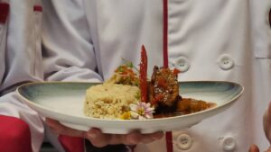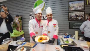 นศ.เทคนิคระยอง โชว์เมนู ‘แกงคั่วเป็ดย่างใส่หน่อกระทือ’ หลังคว้ารางวัลรองชนะเลิศอันดับ 1 การแข่งขัน The Chef Challenge 2025′ ระดับชาติ และเมนู ‘มัสมั่นกล้วยทอง’ เน้นใช้วัตถุดิบในท้องถิ่นมาประยุกต์ ผอ.เผย นศ. ได้ไอเดียเพิ่มมูลค่าอาหาร และเป็นอาชีพเลี้ยงตัว