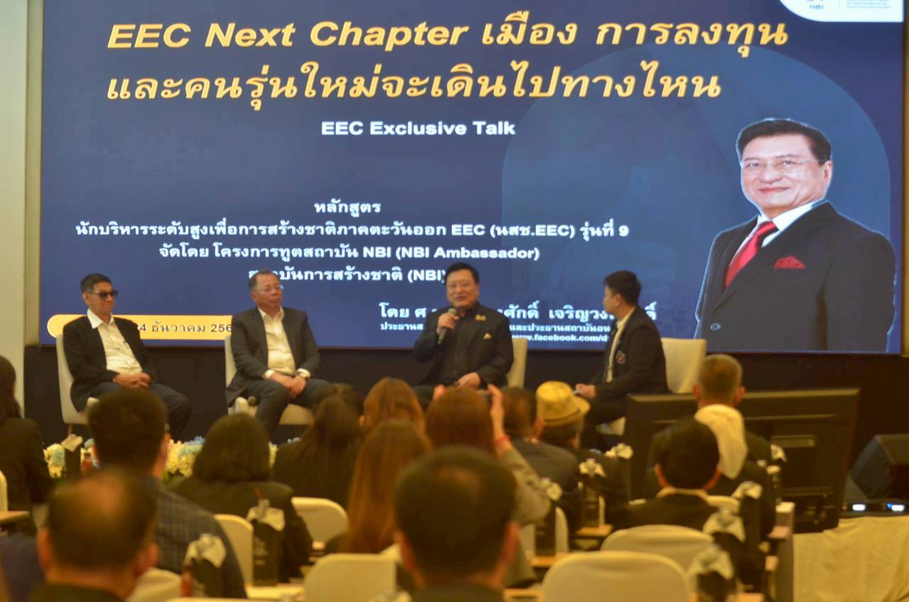 คณะนักศึกษาในโครงการทูตสถาบัน NBI Ambassador สถาบันการสร้างชาติ จัดงานเสวนาเชิงกลยุทธ์ครั้งสำคัญ “EEC Exclusive Talk: EEC NEXT Chapter” เมื่อวันที่ 24 ธันวาคม 2568 ณ ห้องจันทร์สุดา โรงแรมสตาร์ คอนเวนชั่น จังหวัดระยอง เพื่อร่วมแลกเปลี่ยนมุมมองเกี่ยวกับทิศทางอนาคตของเขตพัฒนาพิเศษภาคตะวันออก EEC ในบริบทของเมือง การลงทุน และบทบาทของคนรุ่นใหม่ที่จะเป็นกำลังสำคัญในระยะต่อไป