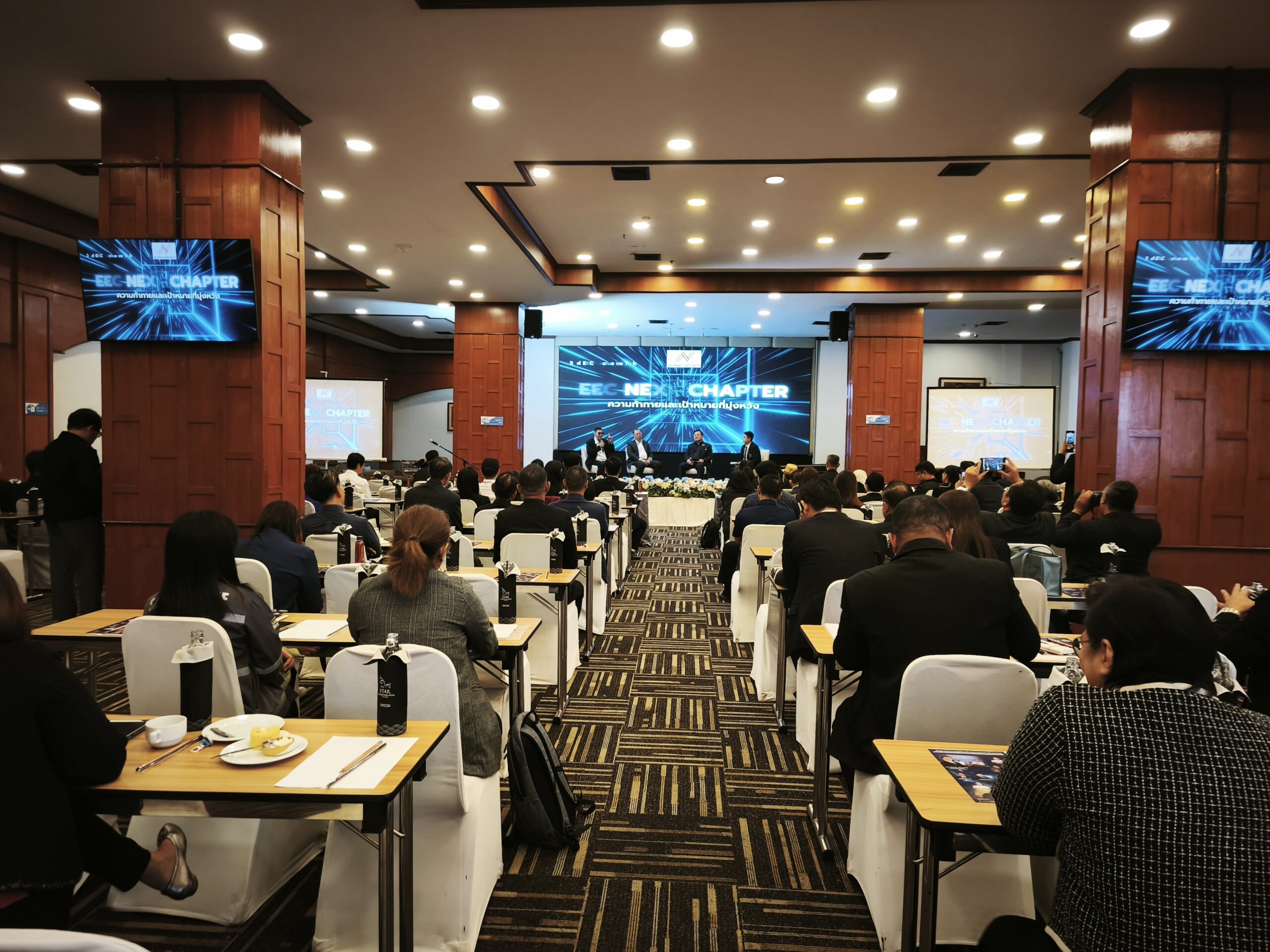บรรยากาศงานเต็มไปด้วยผู้เข้าร่วมจากทั้งภาคราชการ เอกชน นักศึกษา และภาคประชาสังคม ซึ่งได้รับทั้งข้อมูลเชิงวิชาการและประสบการณ์จริงจากผู้บริหารระดับประเทศ ทำให้การเสวนาครั้งนี้เป็นเวทีที่ช่วยให้ผู้ร่วมงานเข้าใจภาพรวมการพัฒนาพื้นที่ EEC อย่างรอบด้าน และสามารถนำข้อคิดไปต่อยอดในการทำงาน การพัฒนาองค์กร หรือการสร้างประโยชน์แก่พื้นที่ได้อย่างเป็นรูปธรรม