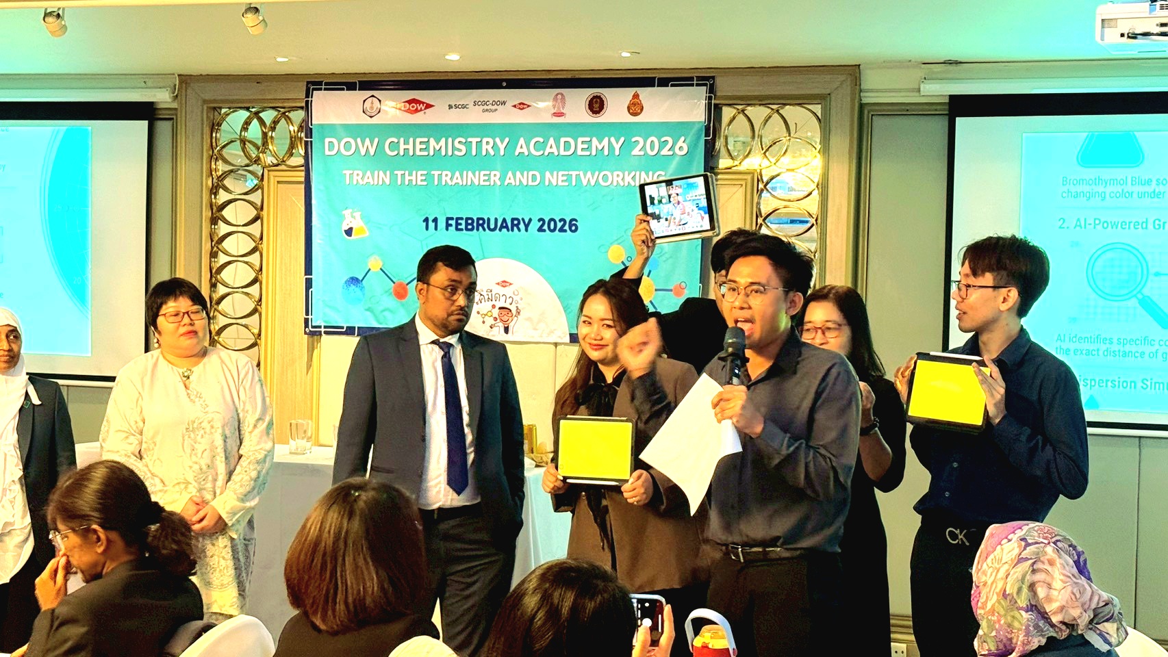 นอกจากนี้ ครูต้นแบบจากโครงการห้องเรียนเคมีดาว ยังได้นำเสนอผลงานและสาธิตเทคนิคการทดลองเคมีแบบย่อส่วนให้แก่ผู้เข้าร่วมกว่า 1,000 คน ในงานประชุมวิชาการนานาชาติ Pure and Applied Chemistry International Conference (PACCON 2026) สะท้อนถึงการบูรณาการองค์ความรู้จากห้องเรียนสู่เวทีวิชาการระดับสากล และบทบาทของครูไทยในการขับเคลื่อนการศึกษาด้านวิทยาศาสตร์อย่างเป็นรูปธรรม