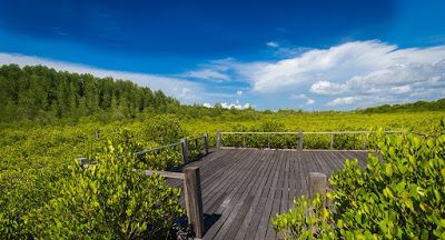 จุดเด่น: สะพานไม้กลางป่าชายเลนสีทอง