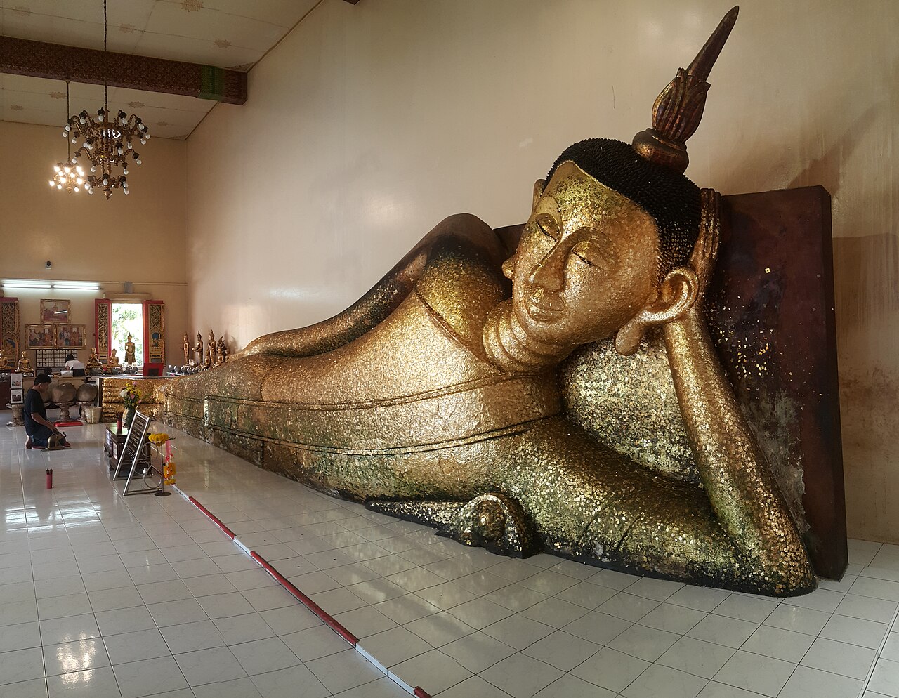 จุดเด่น: พระนอนตะแคงซ้าย (หาชมได้ยาก)